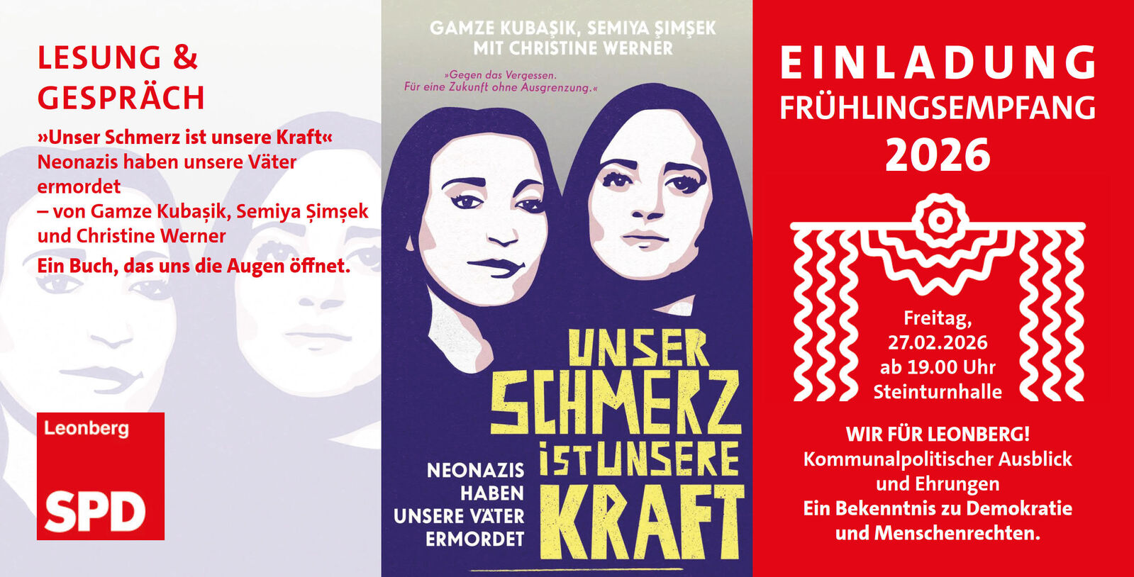 Die Autorinnen Gamze Kubaşık, Semiya Şimşek und Christine Werner reisen persönlich nach Leonberg an. Hierüber sind wir sehr dankbar.
